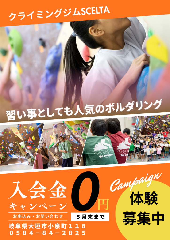 5月末までの入会、入会金¥3000が無料になります!!春から生活が変わったり、何か始めたいと思うタイミングでボルダリングにチャレンジしてみましょう!!